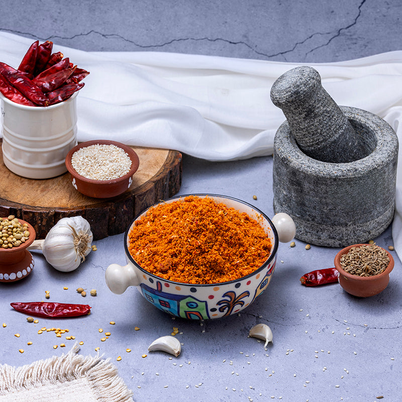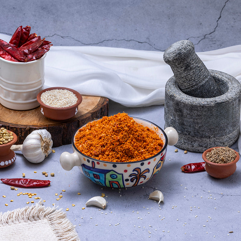 he finest quality sesame seeds and the right mix of flavouring ingredients, roasted and ground to perfection - the result is this spicy, aromatic masala by Andhra Kitchens. Another uniquely Telugu condiment, you can add this to spice up a curry, flavour up some vegetables while cooking or simply sprinkle on some hot rice with ghee and enjoy!